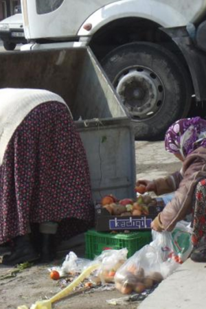 BU FOTOĞRAFTA SARIYER BELEDİYESİ HALK PAZARINDAN. FAKİR VATANDAŞLAR HALK PAZARINDA ÇÖPE ATILANLAR ARASINDAN İŞE YARAR SEBZE VE MEYVELERİ TOPLUYOR.