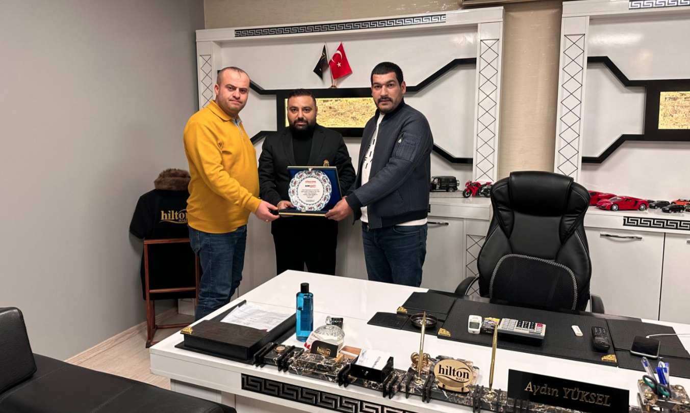Uzun yıllardır Gaziantep’ten Dünyada bir marka haline gelen Hilton Halı Dünya Basın Federasyonu Üyesi yöneticisi araştırmacı yazar Gazeteci Ferhat Aydoğan’dan başarılı ve öz verili çalışmalarından dolayı Hilton Halı yöneticisi iş insanı Aydın Yüksel’i ziyaret ederek Onu Plaketi takdim etti.