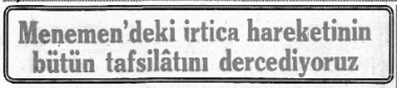 Bunun en güzel örneklerinden birisi de Menemen olayında yaşanmıştır ;