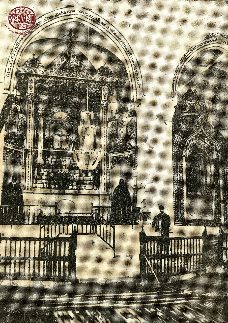 Urfa, Süryanilere ait Surp Boğos Bedros Kilisesinin mihrabı. Surp Asdvadzadzin Kilisesinda olduğu gibi bu mihrab da Mardiros Sevyan’ın eseridir (Kaynak: Aram Sahagyan, Tützaznagan Urfan Yev İr Hayortinerı)