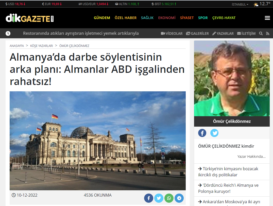 Bu darbe girişiminin tarihsel ve sosyolojik arka planını iyi okumak gerekiyor. Bu girişimi sadece Nazi Almanyası özlemi gibi görmek veya değerlendirmek yanlış olur. Belki yöntem eleştirilebilir ama darbede yer aldıkları iddia edilenlerin ülkelerine duydukları sevgi ve niyetlerini iyi anlamak gerekiyor. Acaba haklarında fezleke hazırlayan federal savcıların ABD çıkarlarına hizmet etmedikleri, ülkede yuvalanmış CIA merkezinden sevk ve idare edilmedikleri ne malum?