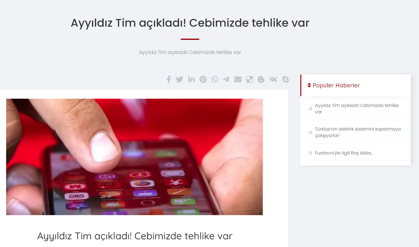 Ayyıldız Tim, telefonlardaki tehlike konusunda bilgi verdi.