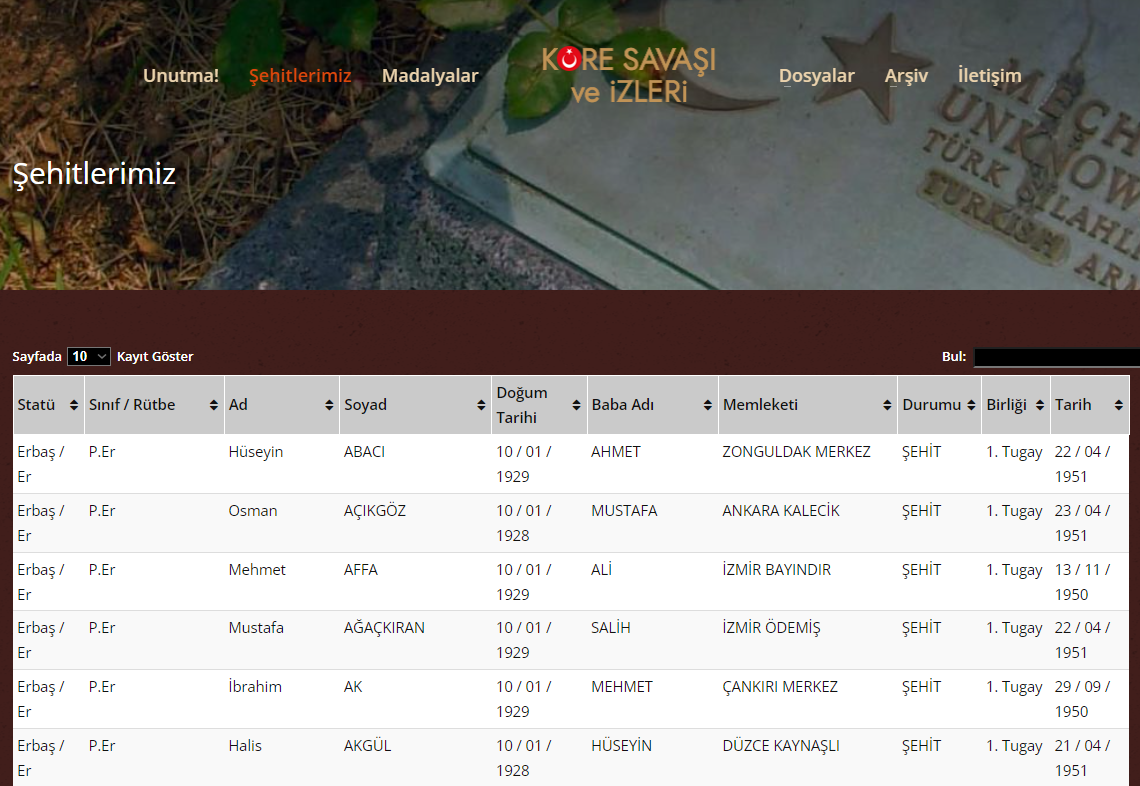SAVAŞ & SAVAŞ TARİHİ & TAKTİKLERİ & TEÇHİZATI & YÖNTEMLERİ & SOĞUK SAVAŞ Yayınlandı: 13.12.2023 14:02 Güncellendi: 17.12.2023 18:03 SAVAŞLAR DOSYASI : KORE SAVAŞI ŞEHİTLERİ – İSİM İSİM WEB SİTESİ LİNKİ : https://koresavasiveizleri.com/sehitlerimiz/