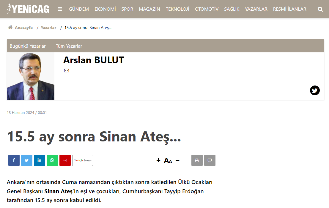 Arslan BULUT : 15.5 ay sonra Sinan Ateş…