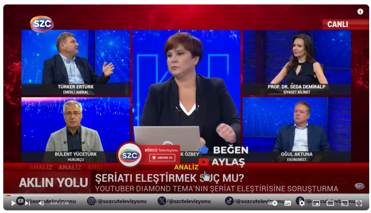 İRTİCA & ŞERİAT & LAİKLİK & TÜRBAN KONUSU & TESETTÜR & İSLAMİ CİHAD & YEŞİL SERMAYE Yayınlandı: 06.07.2024 20:12 Güncellendi: 11.07.2024 15:41 ŞERİAT DOSYASI /// VİDEO : Türker Ertürk’ten Şeriatçıları Çıldırtacak Sözler !!! Çarpıcı Diamond Tema Yorumu VİDEO LİNK :