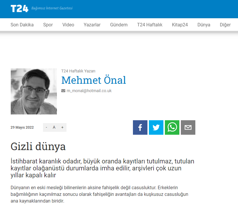 Kasıtlı yaygınlaştırılan ve insan zihninin analiz yeteneğini sıfırlayarak, olanı değil duyduğunu gerçek sanmaya götüren komplo teorileriyle korunan casusluğun tarihi oldukça kapalıdır.
