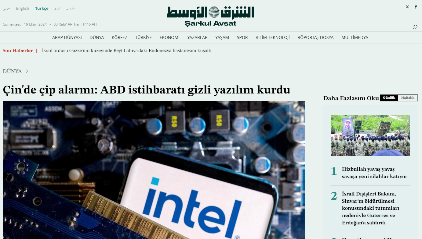 Teknoloji sektörüyle ilgili analizler yapan Liu Dingding, Pekin yönetiminin Intel çiplerini denetleme seçeneğini değerlendirmesi gerektiğini belirterek, “Siber güvenlik ulusal güvenliğin çok önemli bir parçasıdır” ifadelerini kullandı.