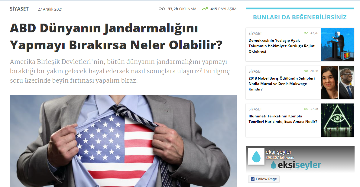 Amerika Birleşik Devletleri’nin, bütün dünyanın jandarmalığını yapmayı bıraktığı bir yakın gelecek hayal edersek nasıl sonuçlara ulaşırız? Bu ilginç soru üzerinde beyin fırtınası yapalım biraz.