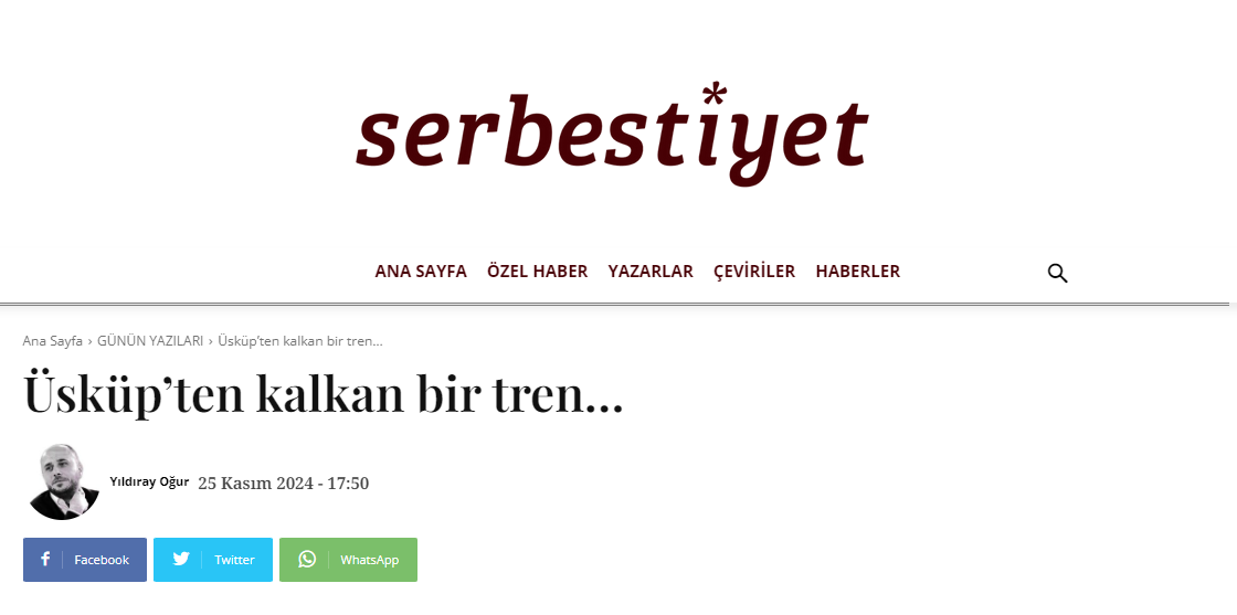 Yıldıray Oğur : Üsküp’ten kalkan bir tren…