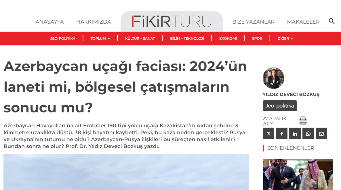 Azerbaycan uçağı faciası : 2024’ün laneti mi, bölgesel çatışmaların sonucu mu ???