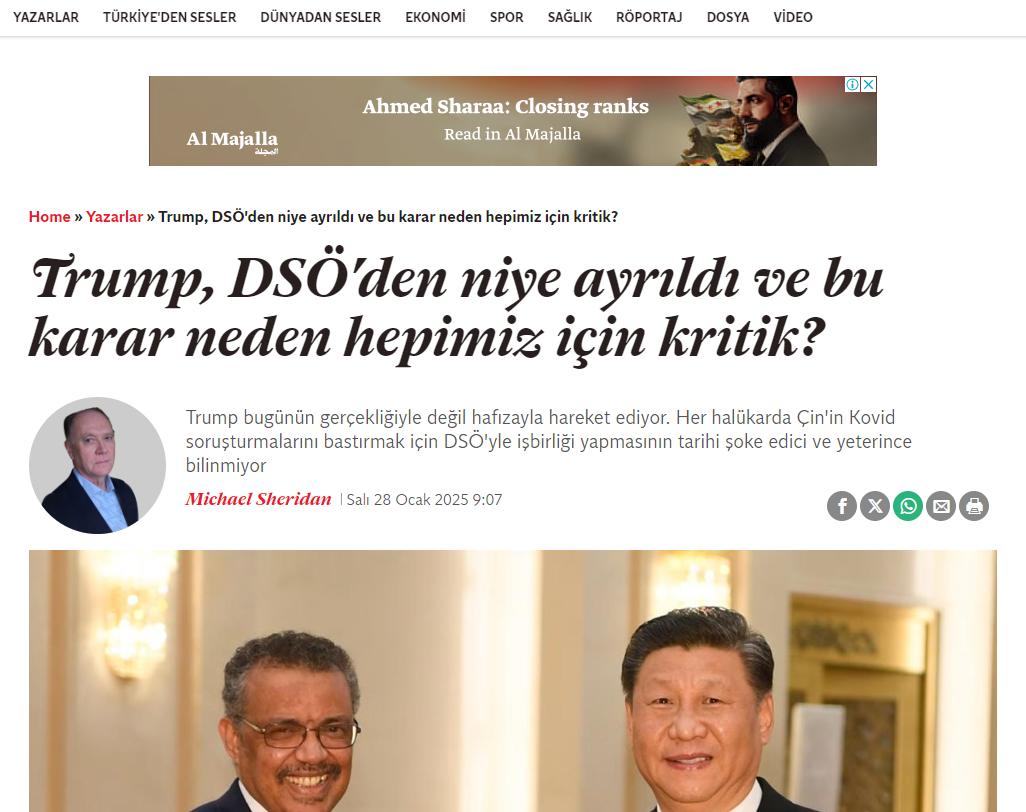 Başkan Trump halihazırda bir anlaşmaya açık olduğuna dair ipucu verdi. ABD çekilirse bu, boş alanı ele geçirecek Çin için bir zafer olur. Hiçbir demokrasi bunu istemez. Acil bir ameliyat gerekiyor: DSÖ’yü kurtarmak için 12 ayları var.
