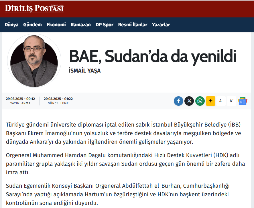 İsmail Yaşa : BAE, Sudan’da da yenildi