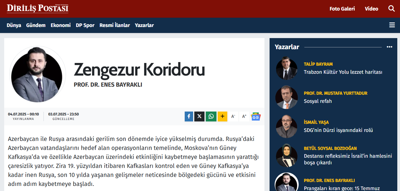 Prof. Dr. Enes Bayraklı : Zengezur Koridoru