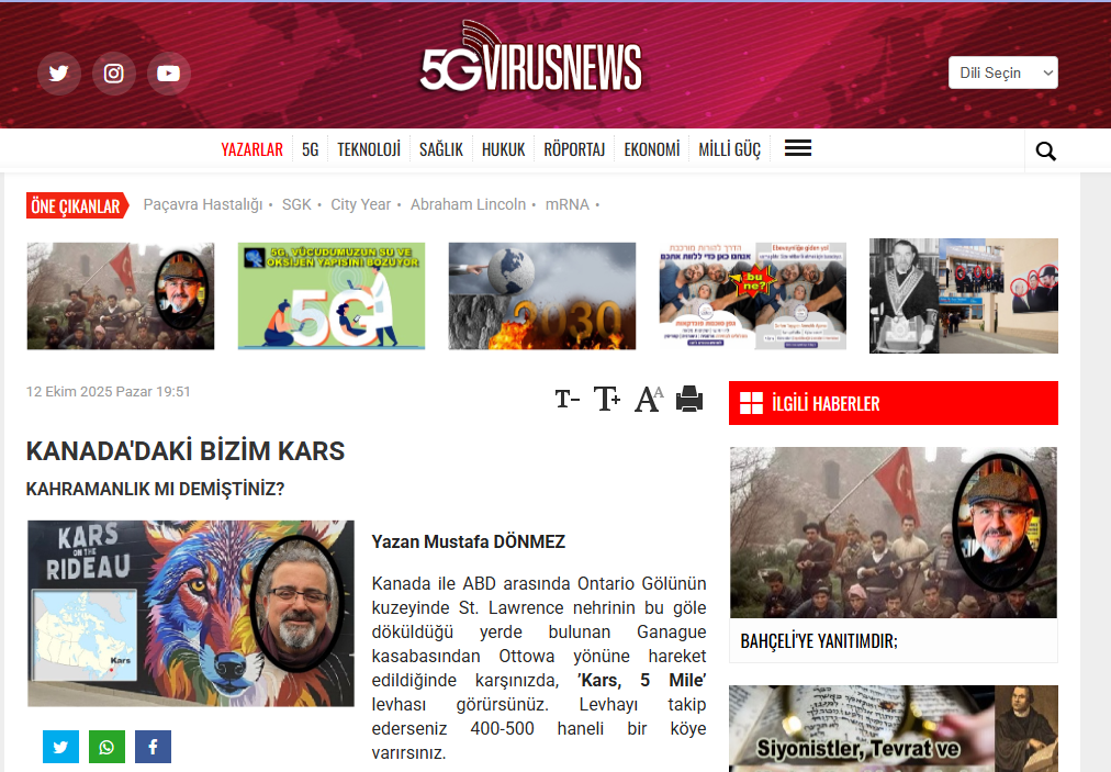 Kanada’daki Kars bugün büyük sanayi tesislerini barındırmakta ve Türk ismini kahramanlıkla yaşatmaktadırlar. Bugün, insanları gözüpek Kars ilimiz, emperyalist işbirlikçi PKK ile anılıyor. Geçen yıl Kars Valiliği’nin açıklamasında terör örgütü PKK/KCK propagandası yaptıkları tespit edilen 5 kişinin yakalandığını öğreniyoruz.