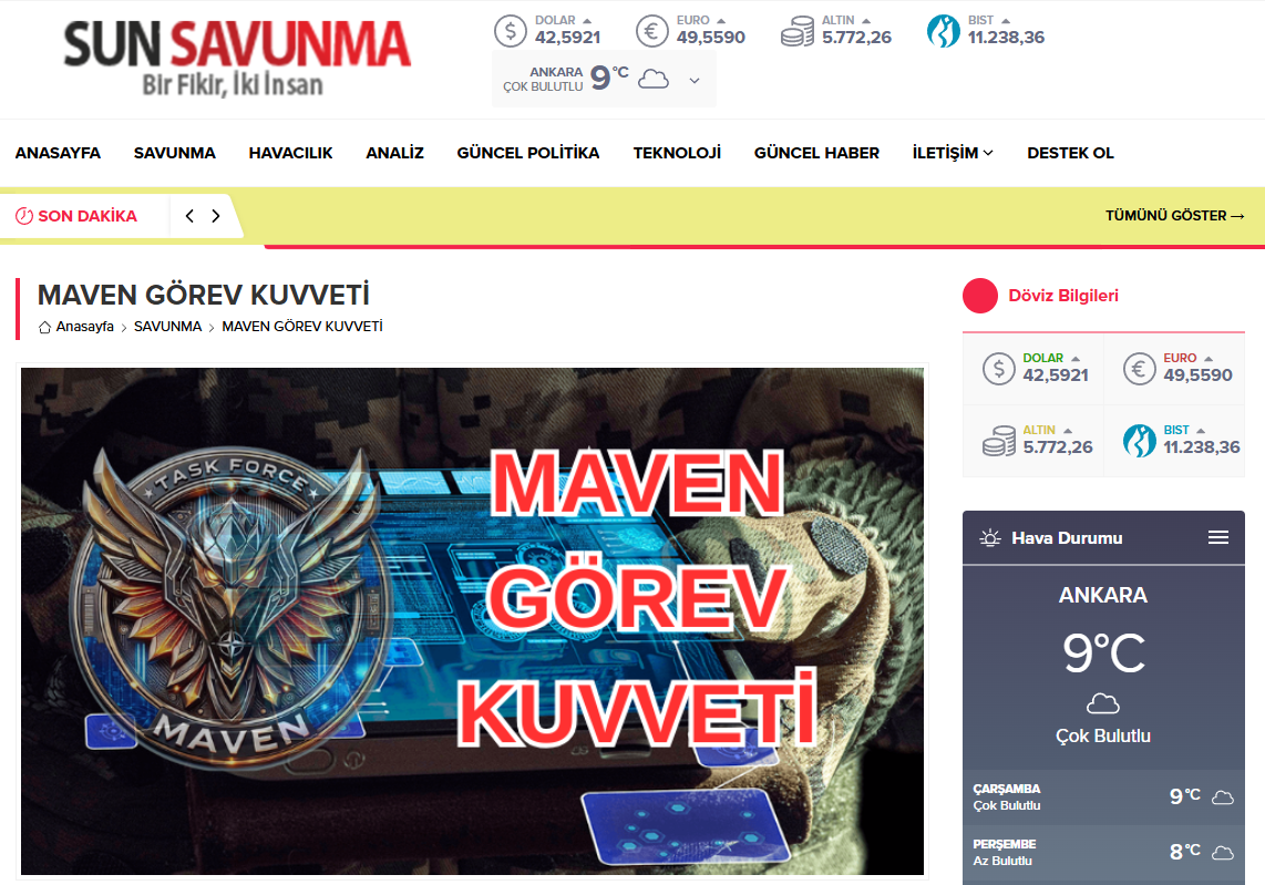 “Maven bize önce mevcut işleri daha iyi yapma, ardından ise daha iyi işler yapma imkânı tanıyacaktır. NATO’nun askerî caydırıcılık ve savunma harekâtlarının komuta-kontrolüne en ileri teknolojiyi getirme öncülüğünü üstlenmekten heyecan duyuyoruz.”