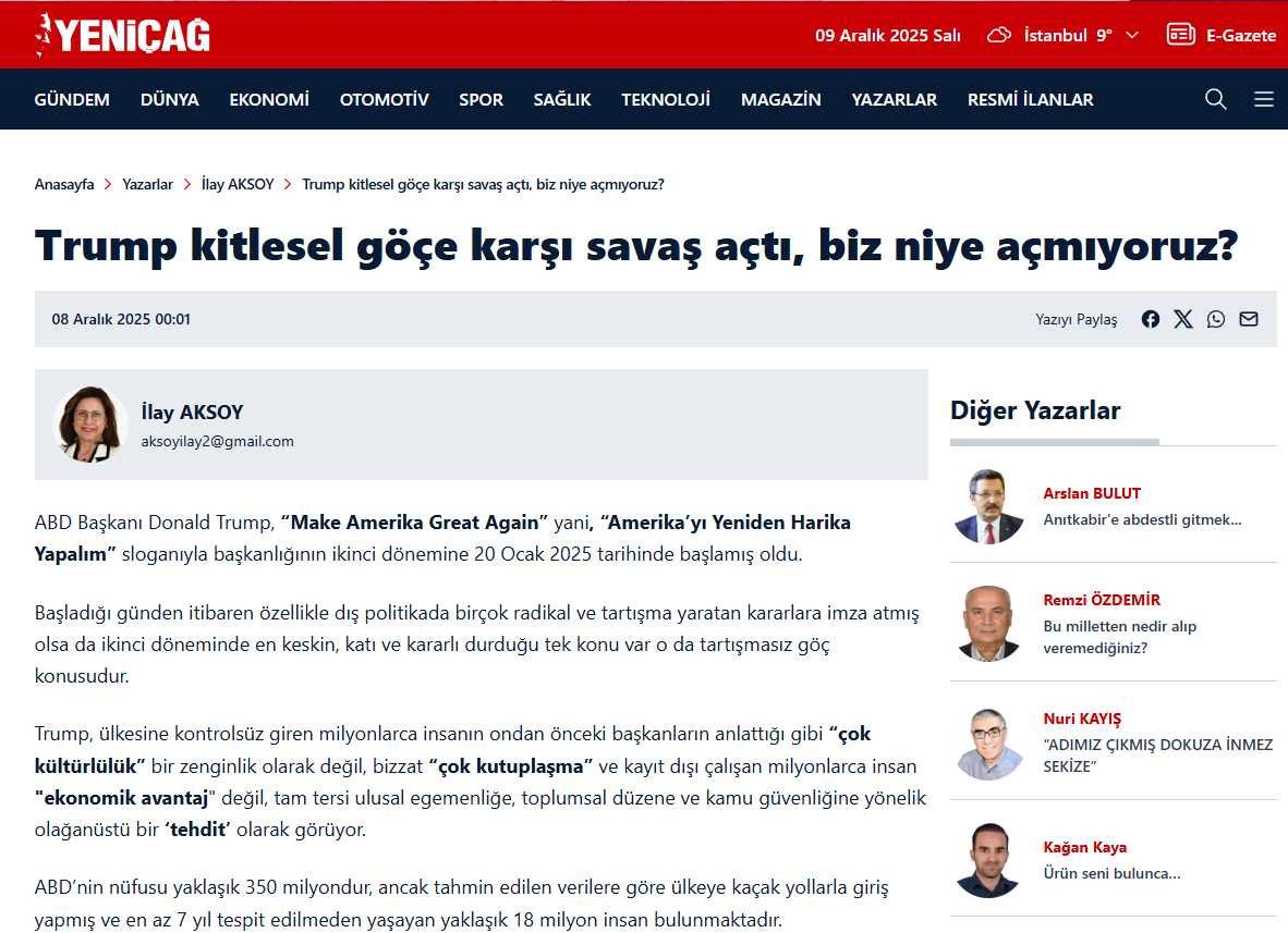 İlay AKSOY : Trump kitlesel göçe karşı savaş açtı, biz niye açmıyoruz ???