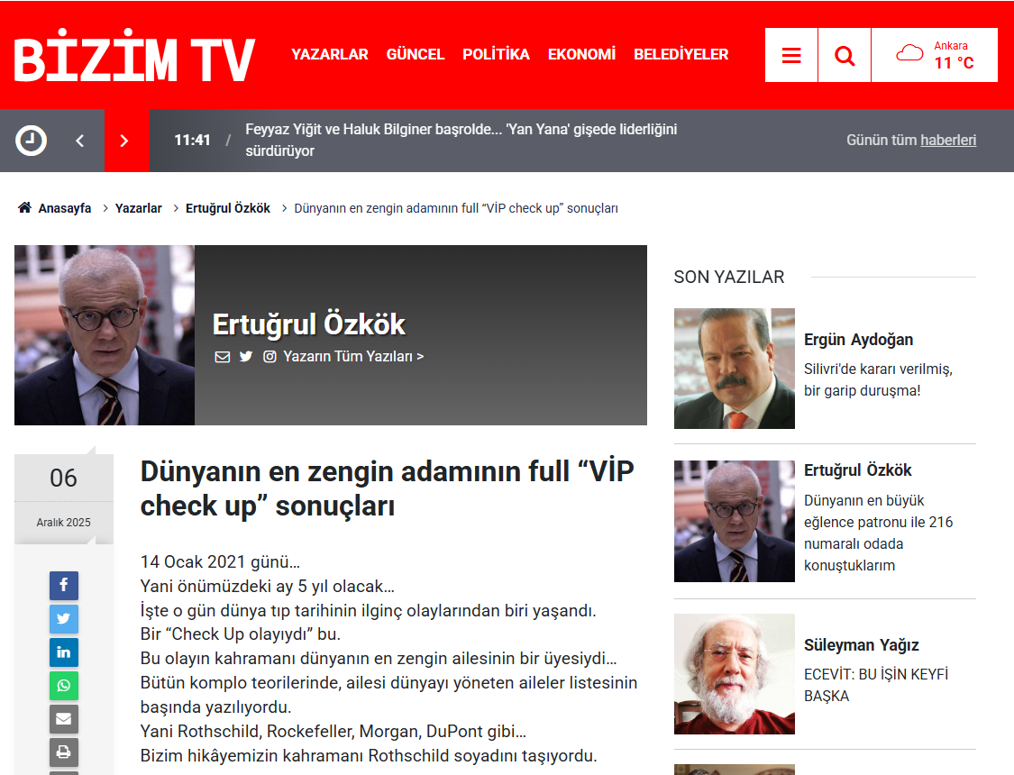 Ertuğrul Özkök : Dünyanın en zengin adamının full “VİP check up” sonuçları