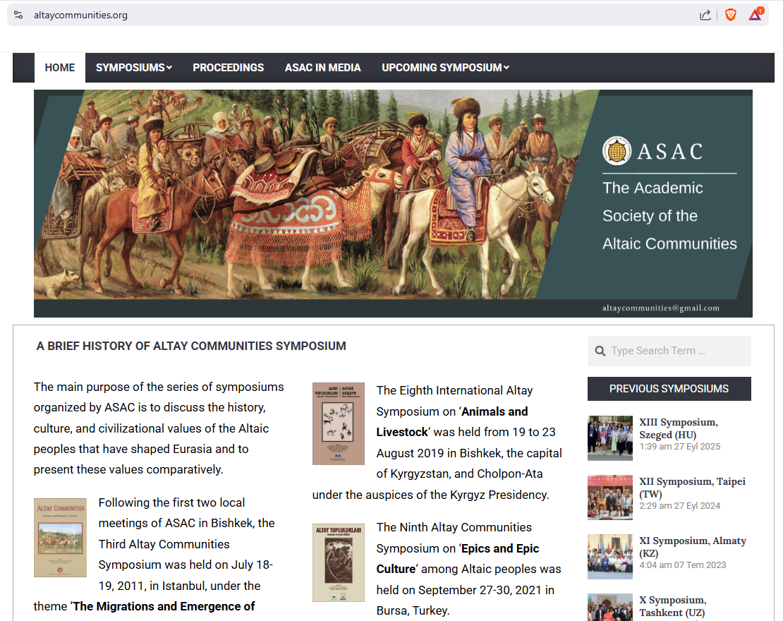 Enclosed are the announcement and registration form, concerning the International Altay Communities Symposium – XIV: The Past, Present, and Future of Altaic Studies to be held on September 09-12, 2026, hosted by the Azerbaijan National Academy of Sciences, Azerbaijan.