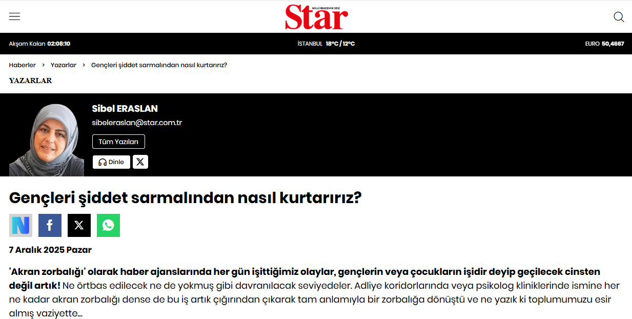 Sibel ERASLAN : Gençleri şiddet sarmalından nasıl kurtarırız ???