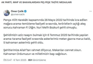 TAZİYE MESAJI : Pençe-Kilit Harekâtı bölgesinde ge…